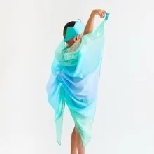 Sea Wings are 26-inches long and made with 100% pure mulberry silk, hand-painted with earth-friendly dyes in our Sea colorway.