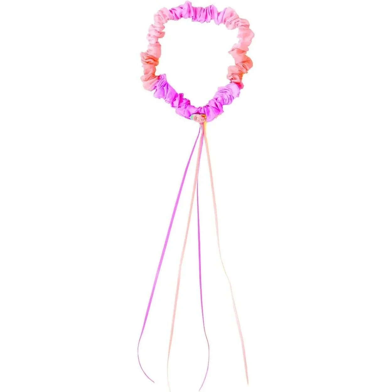 The Blossom Silk Garland features a stretchy elastic band (18 - 28-inch diameter), wrapped in 100% silk, hand-painted, and silkscreened in our Enchanted Blossom colorway. Fits comfortably on even the most sensitive little ones.